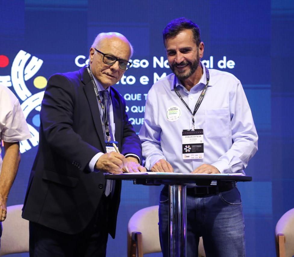 O presidente executivo da ABEETRANS, Silvio Médici e o presidente da AND, Givaldo Vieira, assinaram o Acordo, durante o Congresso, no palco principal do evento, ressaltando a importância dessa parceria. Para Silvio, o momento foi excepcional para apresentar a Associação para os representantes dos Detrans num único dia. “Realmente é uma alegria e satisfação poder estar mais próximo dos Detrans, e fazer isso aqui, onde todos estão reunidos é uma excelente oportunidade”, enfatizou Silvio.